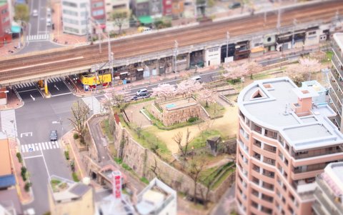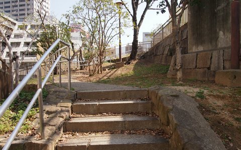 元町駅の西口から神戸駅方面へ高架下を歩いて5分。山側に城跡だけがあります。