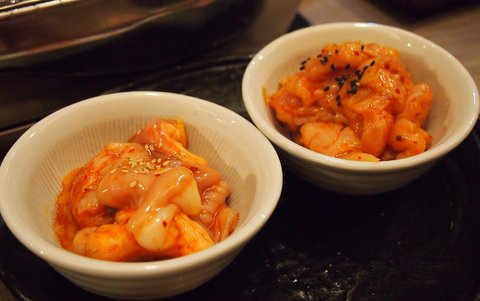 夫婦で焼肉に行くと、妻が高級でカロリーが高そうな良いお肉。自分はもっぱらモツを食べるというのが、パターン。でもこの日は肉を塩で、モツをタレで注文した為、塩味の肉を食べ終わってから、タレ味のモツが来るという、我が夫婦にとっては、ちょっと面倒臭い展開でした。塩でもタレでも、焼くエリアを変えるので、構わず持ってきてください~。
