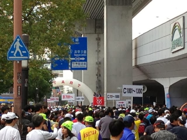 最近マラソン人口多いですからね。凄い人です。スタートをきっても、人混みでなかなか自分のペースでは走れません。まぁ、遅いから人の邪魔さえしなければよいのですが。