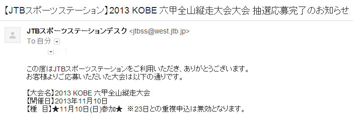 さて、申込み手続きを今終えたのですが、早速メールが送られてきました。抽選応募完了のお知らせ。でも、よく見るとちょっと変です。