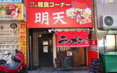もう、いかにも漫画のような店構え。本館牡丹園の軽食コーナーというたてつけお店『明天(みんてん』さんにおじゃましてきました。