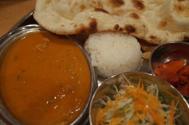 ランパスで割引になっていたのはBセット850円。カレー一種にご飯とナン、パパダム(豆の粉のせんべい)、サラダとピクルス。コスパ的にはこんなものかと。