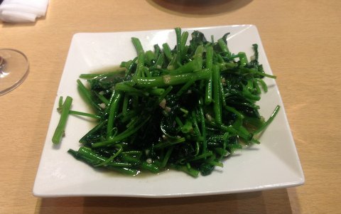季節の野菜炒め700円。空芯菜をにんにくをたっぷり使って炒めてあります。