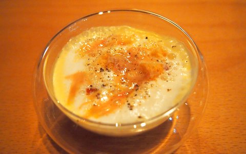 さつまいものスープ、フォアグラのテリーヌのスライスがけ