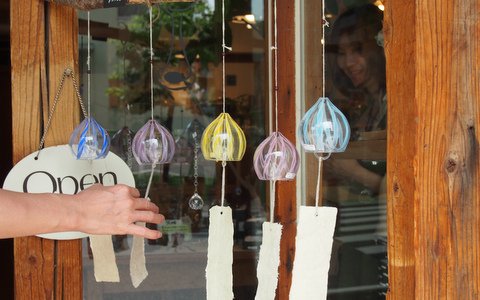 夏近いこの日は、店先に風鈴が並んでいました。買おうかなぁとも思ったのですが、高層階で時に暴風が吹き荒れる我が家では、気が狂った様に鳴りまくるのではと思い、ひとまず見送り。