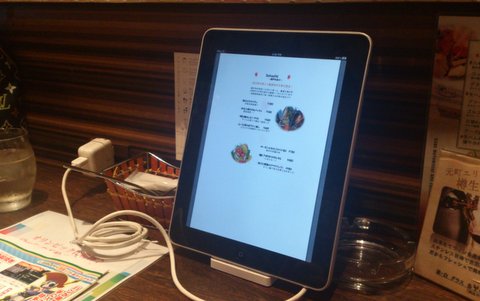 カウンタに置いてあるipad。これが注文システムなら凄いなぁって思いますが。単にメニューが表示されているだけでした。