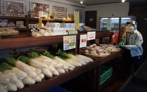 地の野菜、味噌などの調味料、肉加工品、お菓子などなど名産特産が盛りだくさん。結構みていると楽しいです。