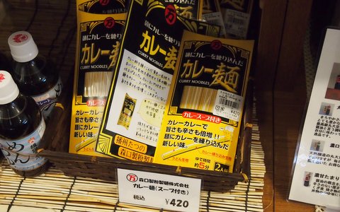 カレー麺なるものも。これはカレースープ付きで、白い普通の麺とカレー麺が混じっているので、茹でると2色のカラフルな麺になります。