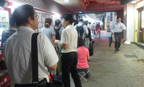 カウンタを持った係のおじさんが人数を数えていて、到着時点で250人位。7時頃に聞いてみると500人との事。販売部数を考えると、8時頃に並んだ人位でぎりぎりだったような気がします。