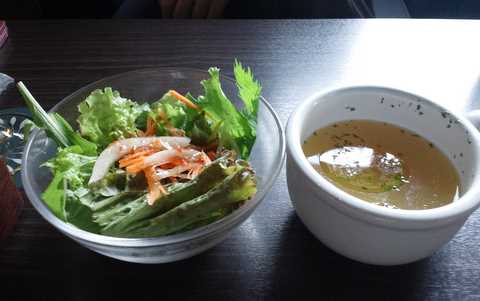 さて食事の方はランチメニューがあり、パスタ(サラダ、スープ付)が1000円前後とリーズナブル。日替わりランチのパスタを選べば更にパンも付きます。