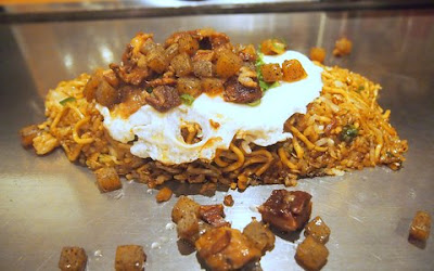 一方そばめしも今や全国区になった長田の伝統的なメニュー。青森というお好み焼き屋さんで、お好み焼きや焼きそばをおかずに持参のご飯を食べていたシューズ工場の工員さんが、焼きそばと一緒に焼いてってお願いしたのが始まりだそうです。まぁ、関西人以外は焼きそばをおかずにご飯を食べるというシチュエーション自体が理解できないでしょうね(#^.^#)