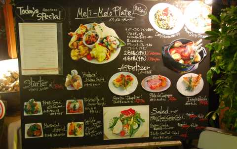 ディナータイムは18時~。Meli-Melo(メリメロプレート)という、前菜の盛り合わせのようなものが1050円でお得感たっぷり。殆どの席で注文されていたように見えました。