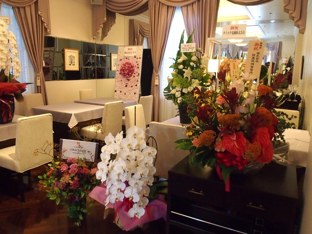 中に入ると相当の数の花束が。神戸フレンチ界では伝説のジャンムーランの美木剛さんの名前も発見。応援に駆けつけられたそうです。