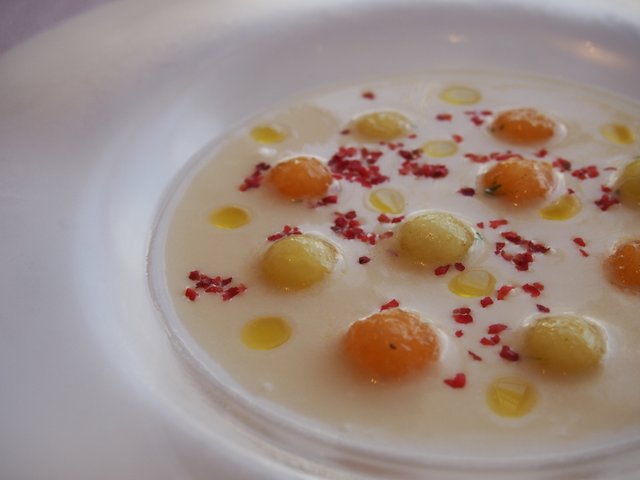 ポテトのヴィシソワーズ。丸いのはメロンです。