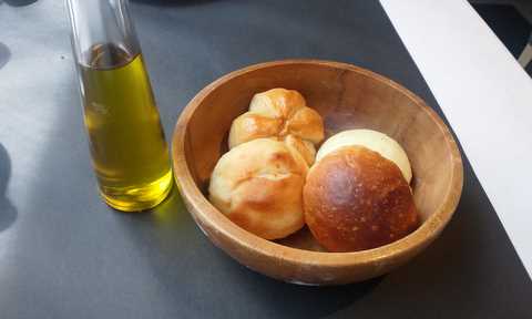 ランチでパスタを注文すると、自家製パンか、フォカッチャ(ピザの具の無いもの)がついてきます。前回の訪問ではフォカッチャを頂いたのですが、少し量も多いという事で、今回はパンをチョイスしました。4種類のパンがあっちっちでGood!