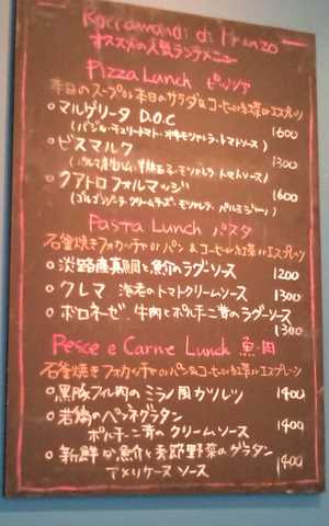 ランチメニューが用意されていたので、ピザランチとパスタランチを2人で取りわける様お願いしました。ピザはトマトソースに生ハム、玉子、モッツアレラチーズがトッピングされたビスマルク。そして、パスタは妻の定番のカルボナーラ。