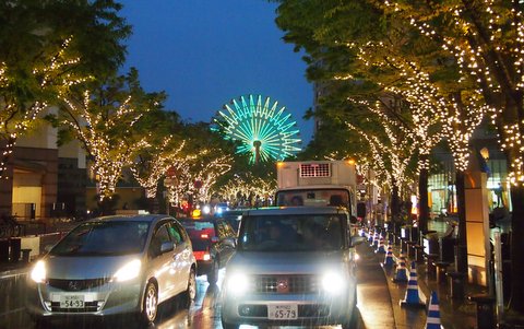 レンガ倉庫へ向かう途中の道沿いのライトアップが綺麗です。