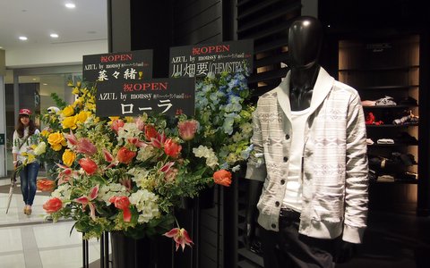 いいなぁと思ったのは、このAzul by moussyというブランド。109系のブランドで、センスがいいとうか。写真のカーディガンを購入。色んな芸能人から花束が届いていました。